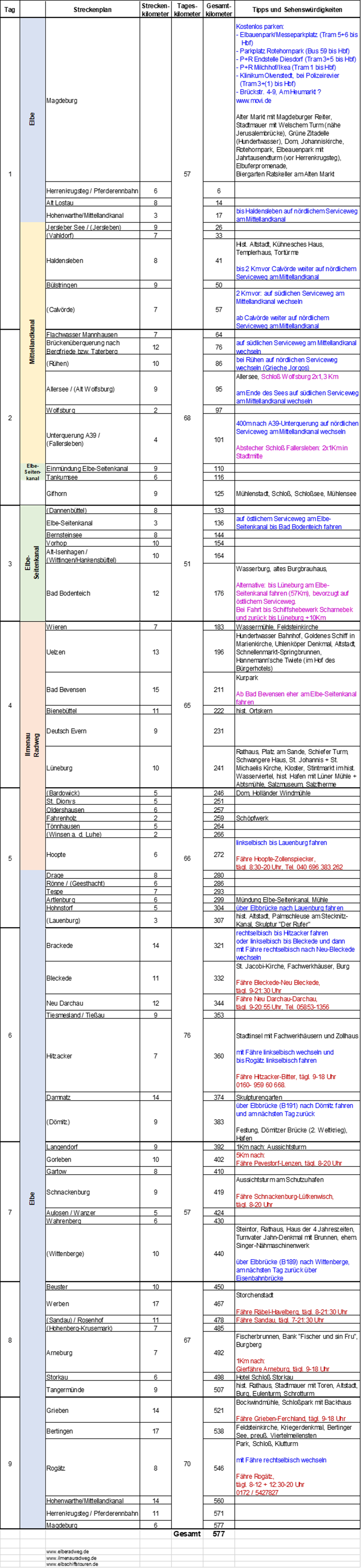 Lauenburg, Wittenberge und Arneburg bis nach Magdeburg.
