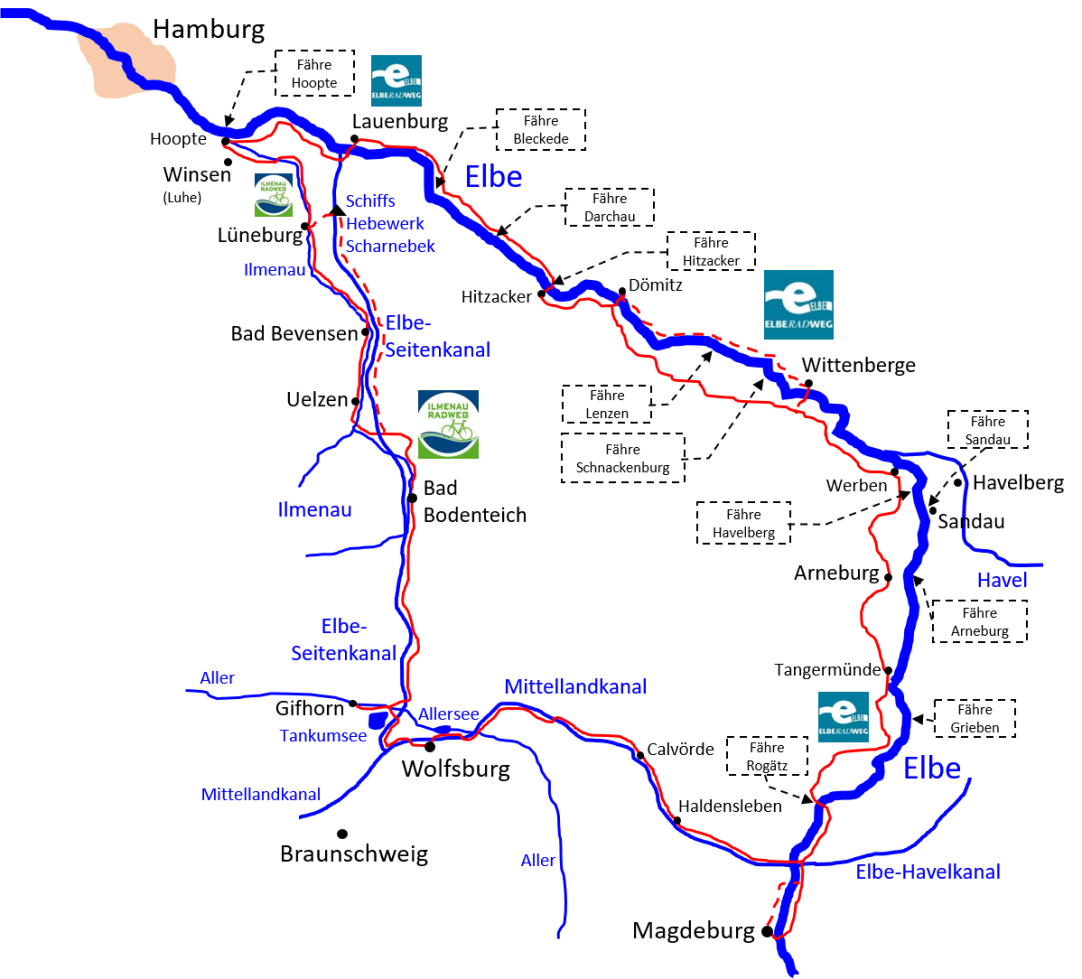 Lauenburg, Wittenberge und Arneburg bis nach Magdeburg.