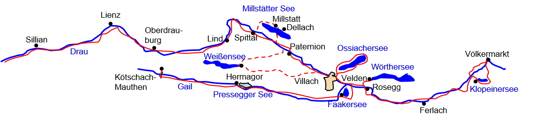 Diese Tour führt ab Sillian an der italienischen Grenze zum Pustertal durch die Kärntner Seenwelt entlang der Flüsse Drau