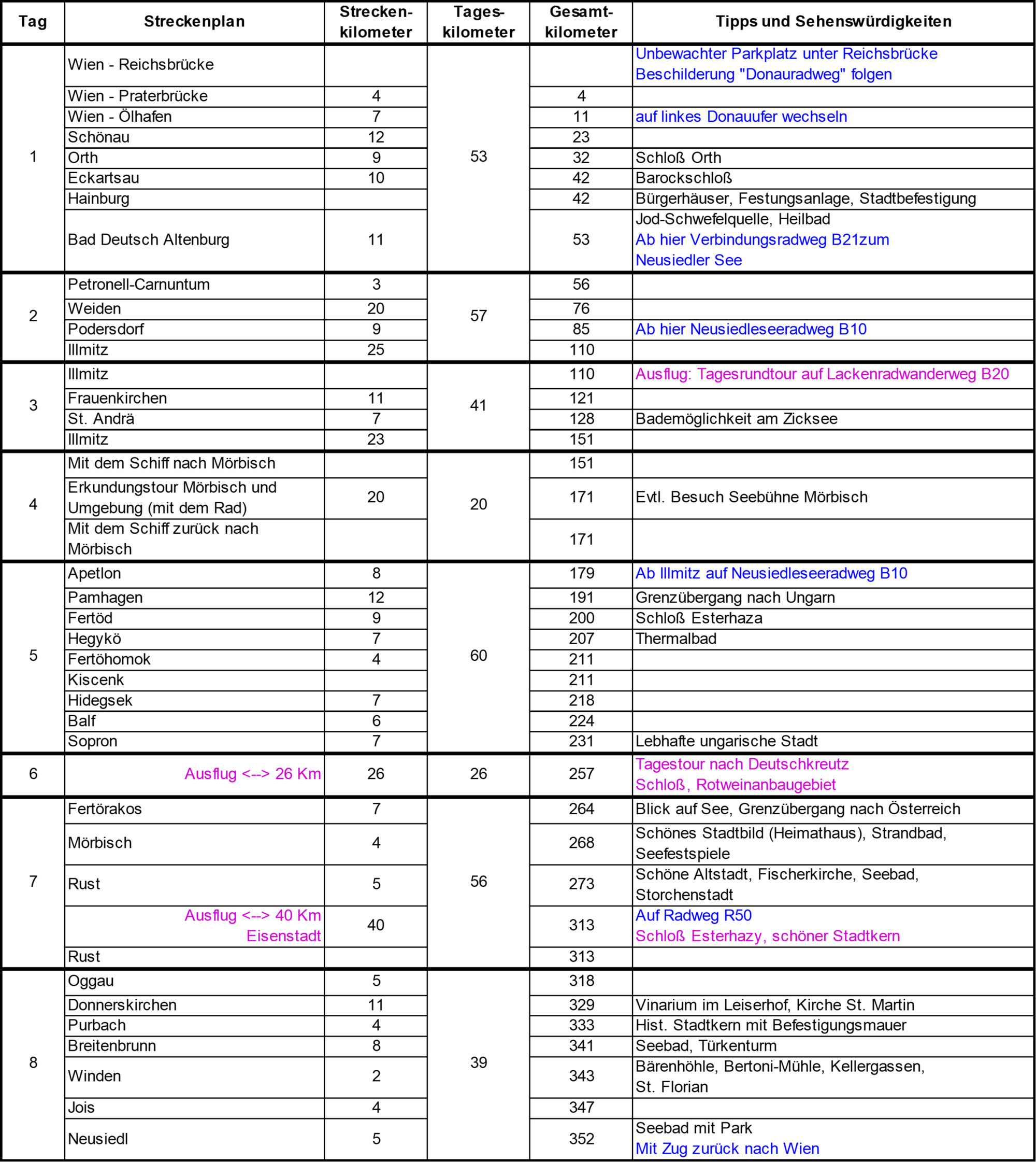 Rückweg nach Wien mit dem Rad einsparen will, kann ab Neusiedl mit dem Zug zurückfahren.