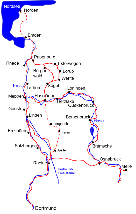 Wer gerne immer gegen den Wind radeln will, für den ist diese norddeutsche Tour genau das Richtige. Ab Melle am Haseursprung geht’s über Osnabrück, Haselünne, Papenburg, Meppen, Rheine und wieder zurück über Osnabrück nach Melle. 9 Radeltage sollte man für die